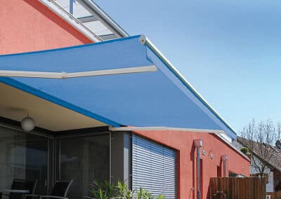 • Geschützt: durch das optionale Schutzdach für das Markisentuch im eingefahrenen Zustand